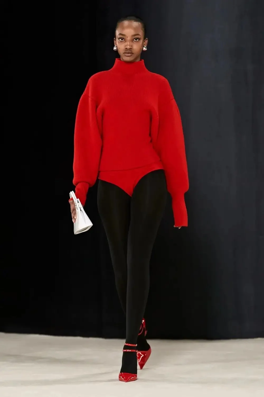 Ferragamo uses bold statement colors in many of their designs. This vibrant red bottomless look is sure to make an impact.
