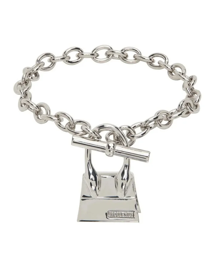 The Jacquemus Silver ‘Le Bracelet Chiquito’ Bracelet is a cable chain bracelet in silver-tone brass, featuring a logo-engraved graphic charm at the toggle fastening.