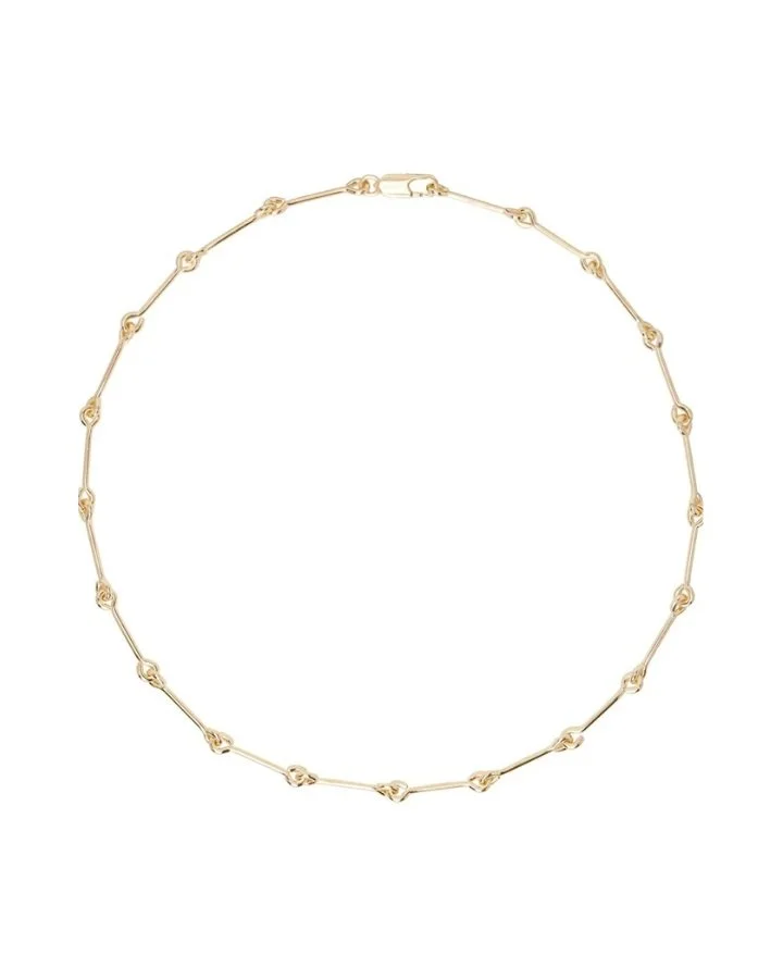 For a more understated look, the Laura Lombardo Gold Treccia Necklace is a perfect choice. Handcrafted in 14k gold-plated brass, this bar chain necklace features a lobster-clasp fastening and a length of 16 inches.