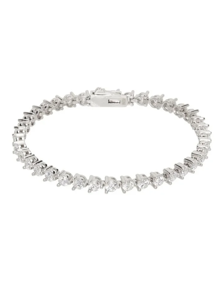 The Numbering Silver #3910 Bracelet is a stunning piece that is perfect for special occasions. This cup chain bracelet in platinum-plated sterling silver features cubic zirconia stones throughout and a logo-engraved box-clasp fastening.