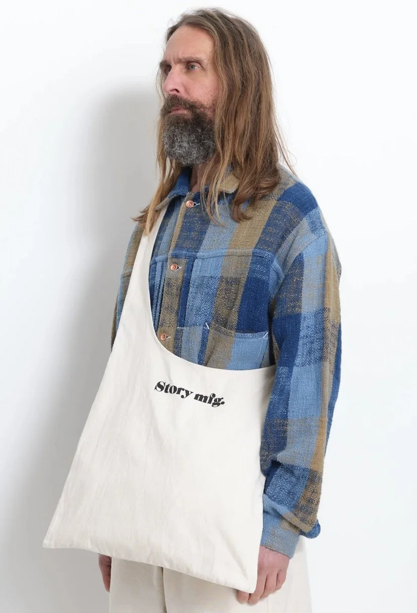 This tote bag with Story mfg.’s logo printed on the front is simplistic in its design, yet makes the bag completely versatile. Use this accessory as a finishing touch to any casual outfit.
